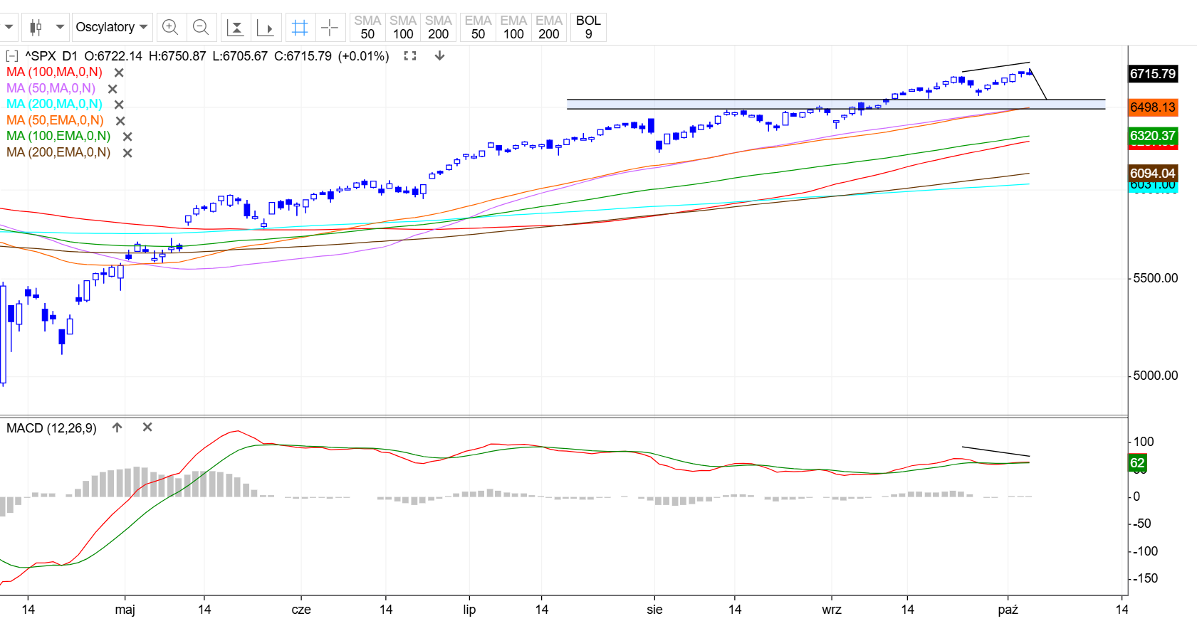 Amerykanie tak jak ostatnio pisałem. Małe nadbicie maksimów i kolejna mini dywergencja. Teraz czas na cofnięcie do lokalnego wsparcia? i ciąg dalszy zabawy?