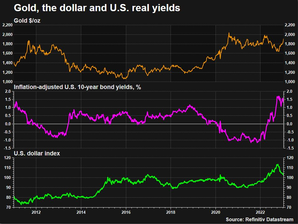 Dwa najważniejsze czynniki mające wpływ na złoto to inflacja i rosnące rentowności obligacji, wynikające z oczekiwań, iż Rezerwa Federalna będzie musiała przez cały czas agresywnie podnosić stopy procentowe.