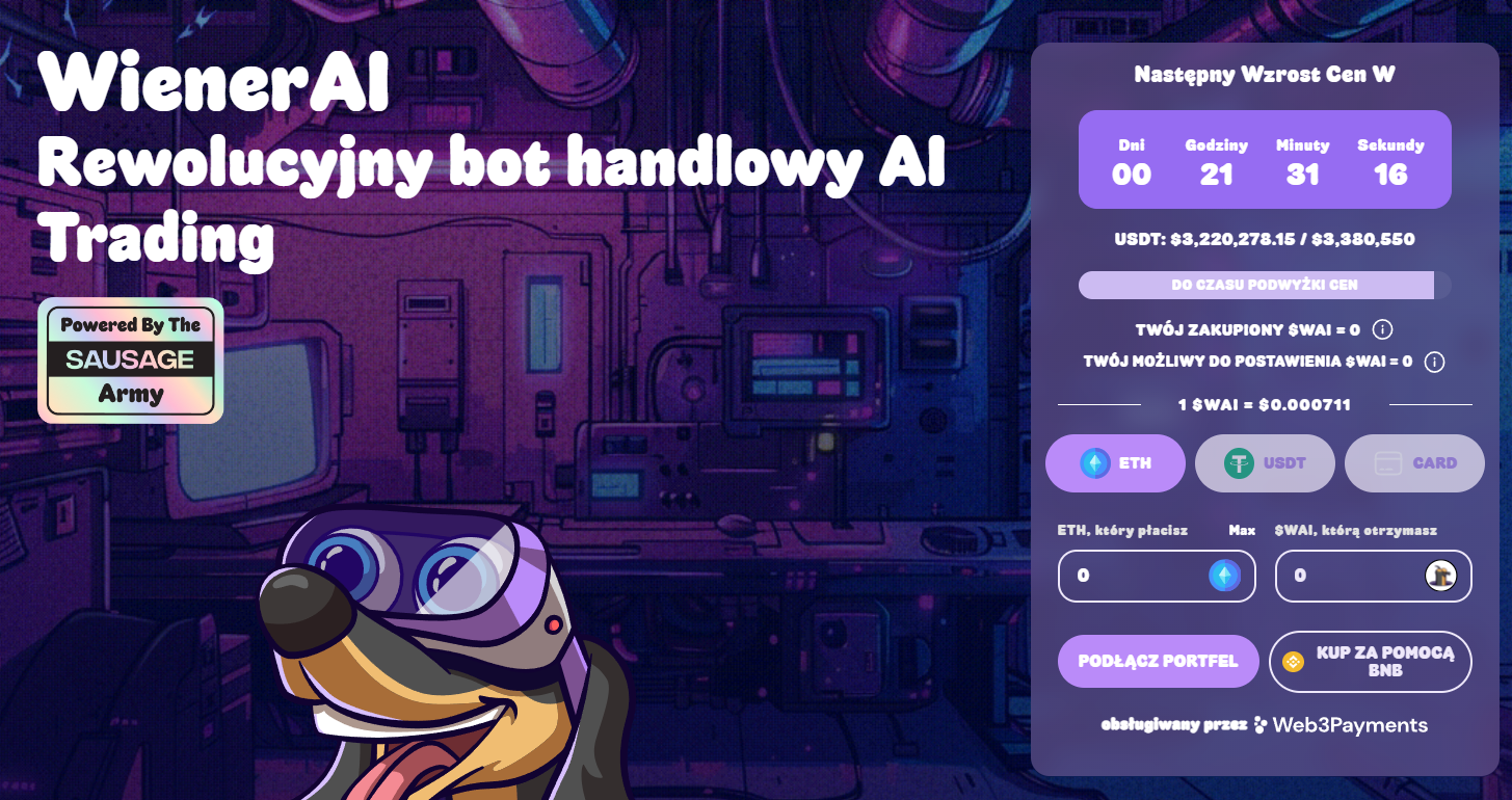 “W połowie parówka, w połowie bot AI” już w fazie przedsprzedaży zebrał ponad 650 tys. USD, wykorzystując zalety sztucznej inteligencji oraz falę popularności monet memowych. Kolejna podwyżka cen ma nastąpić w ciągu niecałej doby. o ile dobra passa waluty utrzyma się, token na blockchainie Ethereum ma szansę powtórzyć sukces Dogecoina, PEPE czy BONK.