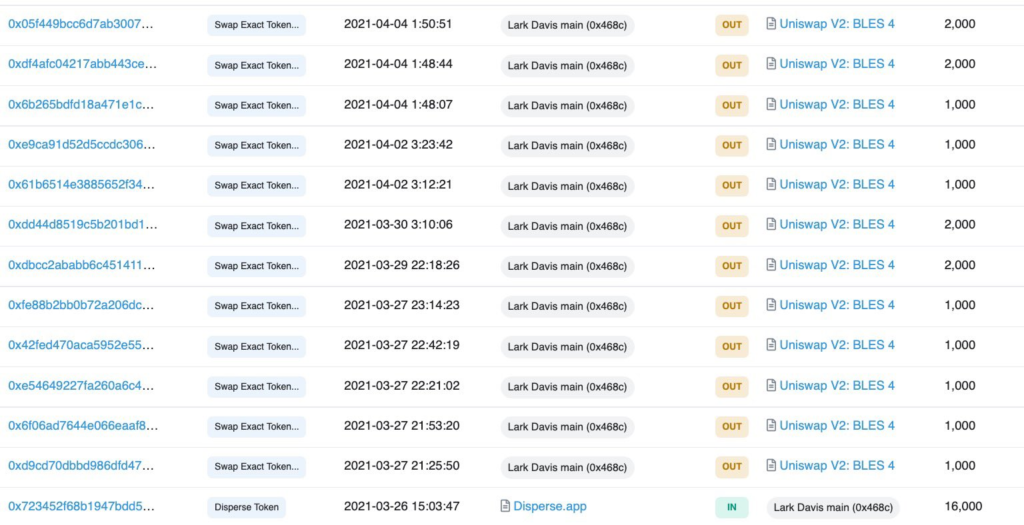a) 26 marca 2021 o 15:03 UTC Lark otrzymuje 16 tys. tokenów BLES