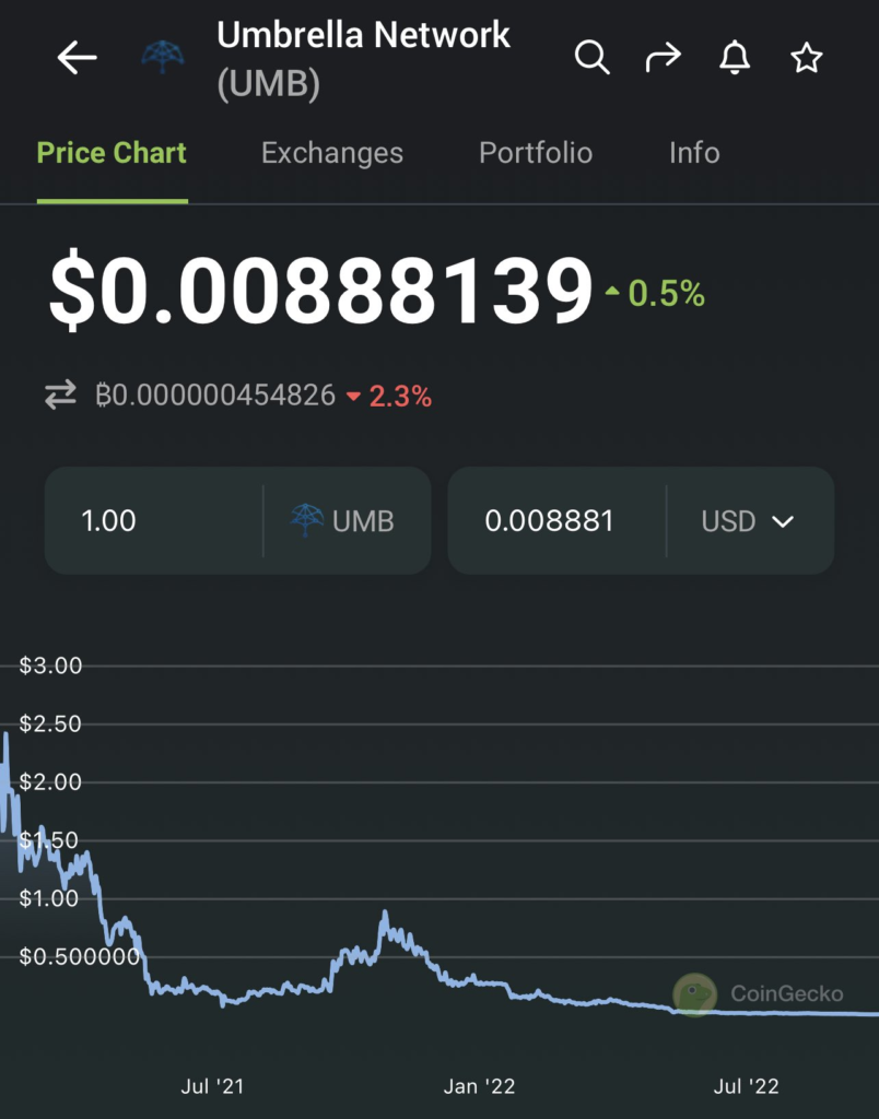 Oto co stało się z tokenem Umbrella UMB. Źródło: Coingecko, Twitter