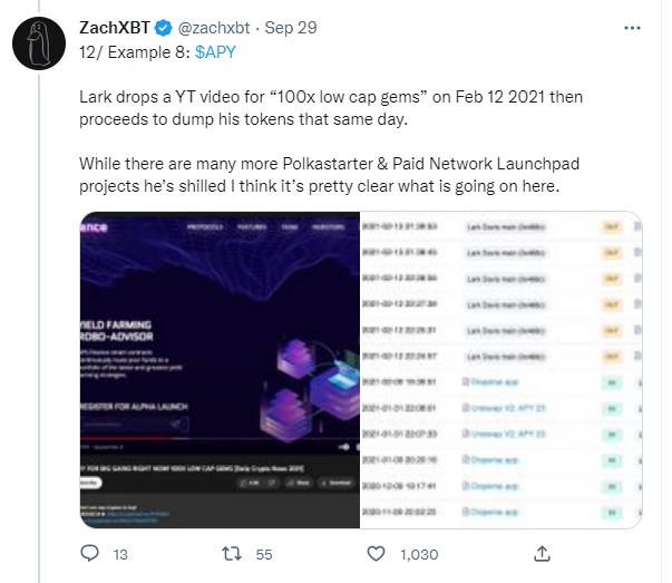 Poniższy artykuł będzie tłumaczeniem tweetów publikowanych przez znanego w branży kryptowalutowej analityka on-chain, ZachXBT, który posiada konto na Tweeterze legitymujące się takim samym pseudonimem. Obnaży brutalną prawdę na temat ludzkiej naiwności, De-Fi oraz tego w jaki sposób dorabiała się i wciąż to robi część tzw. analityków z Youtube’a. To odnośnik do konta ZachXBT na Twitterze: