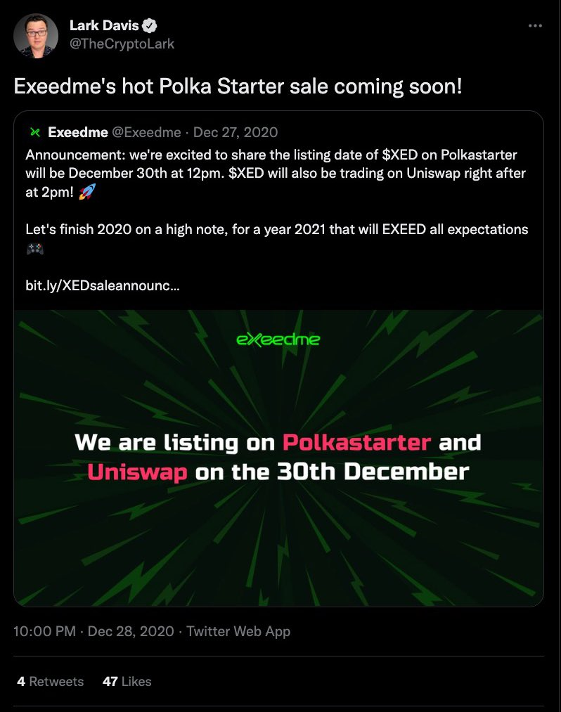 a) 28 grudnia 2020 Lark tweetuje o XED