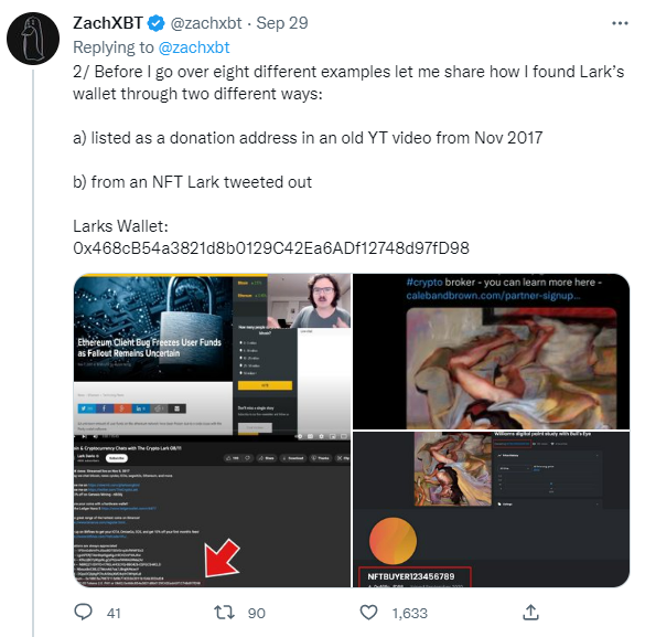 Zanim przejdziemy do różnych przykładów pozwólcie mi podzielić się tym, jak znalazłem portfel Larka poprzez dwa różne sposoby: