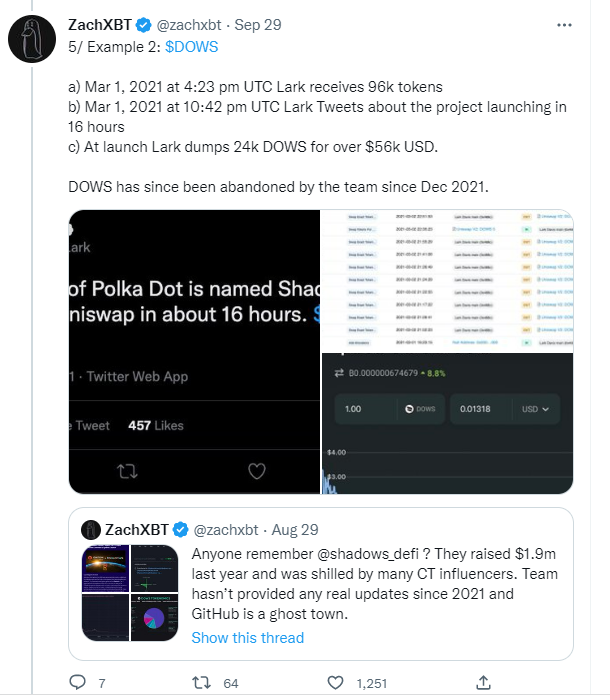 Poniższy artykuł będzie tłumaczeniem tweetów publikowanych przez znanego w branży kryptowalutowej analityka on-chain, ZachXBT, który posiada konto na Tweeterze legitymujące się takim samym pseudonimem. Obnaży brutalną prawdę na temat ludzkiej naiwności, De-Fi oraz tego w jaki sposób dorabiała się i wciąż to robi część tzw. analityków z Youtube’a. To odnośnik do konta ZachXBT na Twitterze: