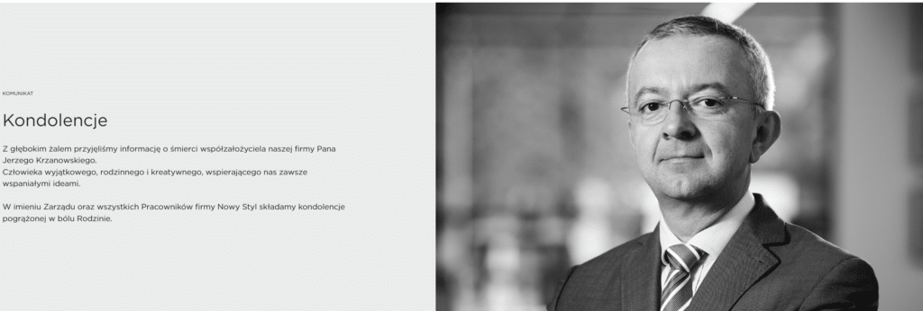 Kondolencje laudacja na temat Jerzego Krzanowskiego na stronie firmy Nowy StylKariera upstrzona sukcesami