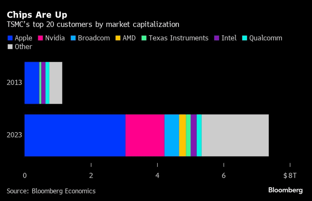Największe firmy technologiczne stoją w rozkroku między Tajwanem, a zachodnim wybrzeżem USA. Jakakolwiek eskalacja na wyspie spowodowałaby tąpnięcie na światowych rynkach.