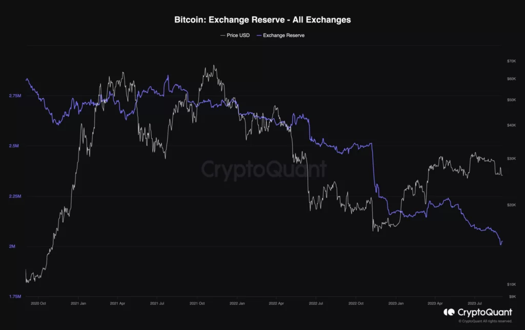 Przed ogłoszeniem bankructwa FTX jesienią 2022 r. na giełdach znajdowało się 2,511 mln BTC. Od tego czasu zatem wycofano kolejne 487 000 BTC. W ciągu trzech miesięcy od 23 maja do 23 sierpnia 2023 r. z giełd kryptowalut wycofano wspomniane prawie 200 tysięcy BTC. Do 28 sierpnia zasoby BTC na tych platformach spadły poniżej poziomu 2 milionów, a dane cryptoquant.com wskazują na saldo 2 007 427 BTC. W ciągu ostatnich paru dni nastąpił niewielki wzrost, stan ten zwiększył się do 2,024 miliona BTC.