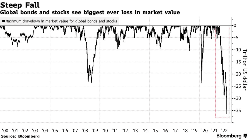 W 2022 roku kapitalziacja globalnych akcji i obligacji spadła o rekordowe 18 miliardów dolarów. Rok 2023 okazał się dużo bardziej łaskawy, zwłaszcza dla akcji. Obligacje w listopadzie złapały wiatr w żagle w miarę rosnących zakładów na obniżki stóp Fed. Od paniki do euforii.
