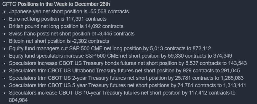 Spekulanci nieznacznie zwiększyli zakłady na dalszy spadek rentowności 10 letnich obligacji i wycofują się z wciąż olbrzymich niedźwiedzich pozycji na aktywach dłużnych. Jednocześnie traderzy wyraźnie oczekują zadyszki na S&P 500 i zwiększyli o ponad 15% pozycje krótką na S&P500 w czasie, gdy zarządzający aktywami zredukowali bycze zakłady netto tylko nieznacznie, prawdopodobnie w wyniku optymalizacji podatkowej. Źródło: CFTC, FJPodsumowanie