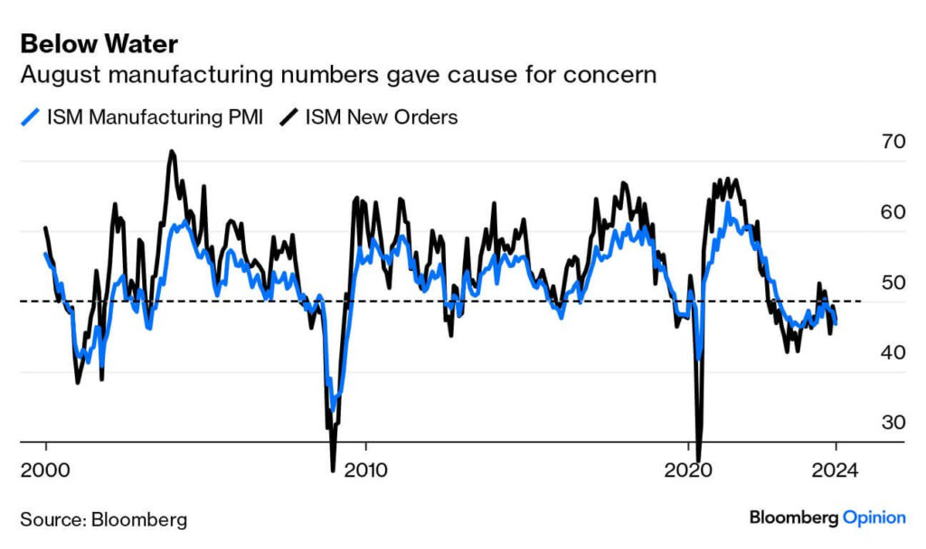 Wraz z odczytami ogólnej koniunktury przemysłu USA w lipcu, spadła ilość nowych zamówień. Źródło: BloombergKalendarz ekonomiczny