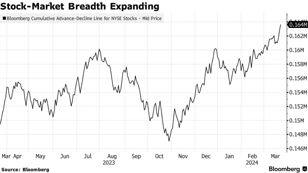Na Wall Street trwa regularna hossa. NYSE notuje rekordową siłę. Źródło: Bloomberg