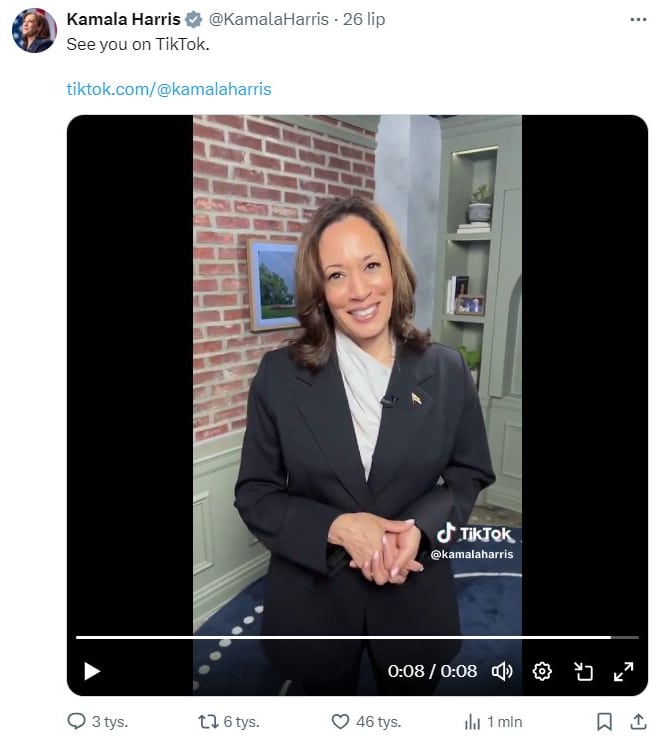 Z kolei wczoraj ruszył oficjalny kanał Harris na TikToku.