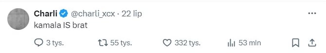 Piosenkarka Charli XCX wywołała wielkie poruszenie na platformie X, ponieważ jej wpis na platformie X okazał się niezwykle istotny dla trwającej w tej chwili kampanii Harris.