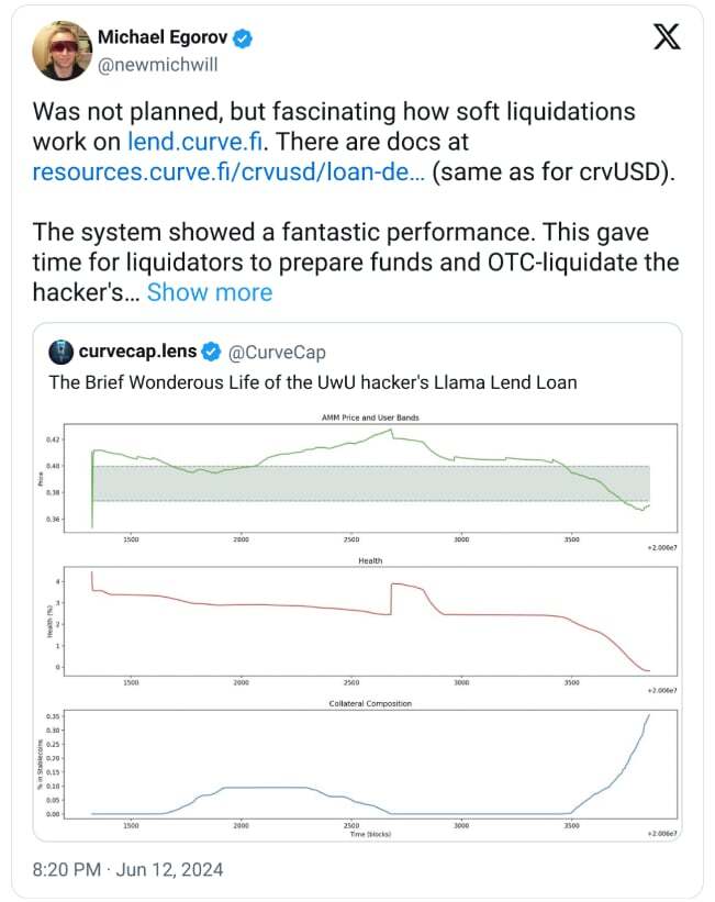 Egorov ocenił, iż całe zdarzenie nie było planowane… Ale wskazał jako fascynujące, jak dobrze działają likwidacje w protokole Curve. Założyciel uważa, iż cały system pokazał fantastyczną wydajność. Co dało czas likwidatorom na przygotowanie środków i OTC-likwidację pozycji hakera. W rezultacie w systemie nie ma już środków hakerów, nie ma złych długów, wszystko działa dobrze. Nie sądziłem, iż tak gwałtownie zobaczę ten aspekt przetestowany w prawdziwym życiu, ale wygląda na to, iż zbudowaliśmy coś niesamowitego. Inni uważają komentarz Egorova za oczywisty blef, który ma ocalić go od wyrzucenia z pozycji i katastrofy projektu. Zrobił dobrą minę do złej gry?