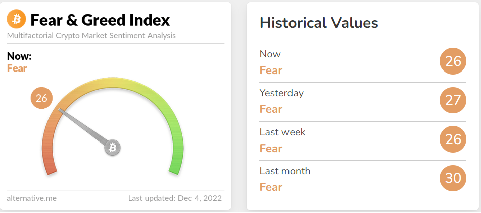 Dzisiaj indeks Fear & Greed pokazuje liczbę 26 – strach. Wydaje się, iż pozostało potencjał na kolejny większy spadek, aby wywołać jeszcze większy, ekstremalny strach na rynku.