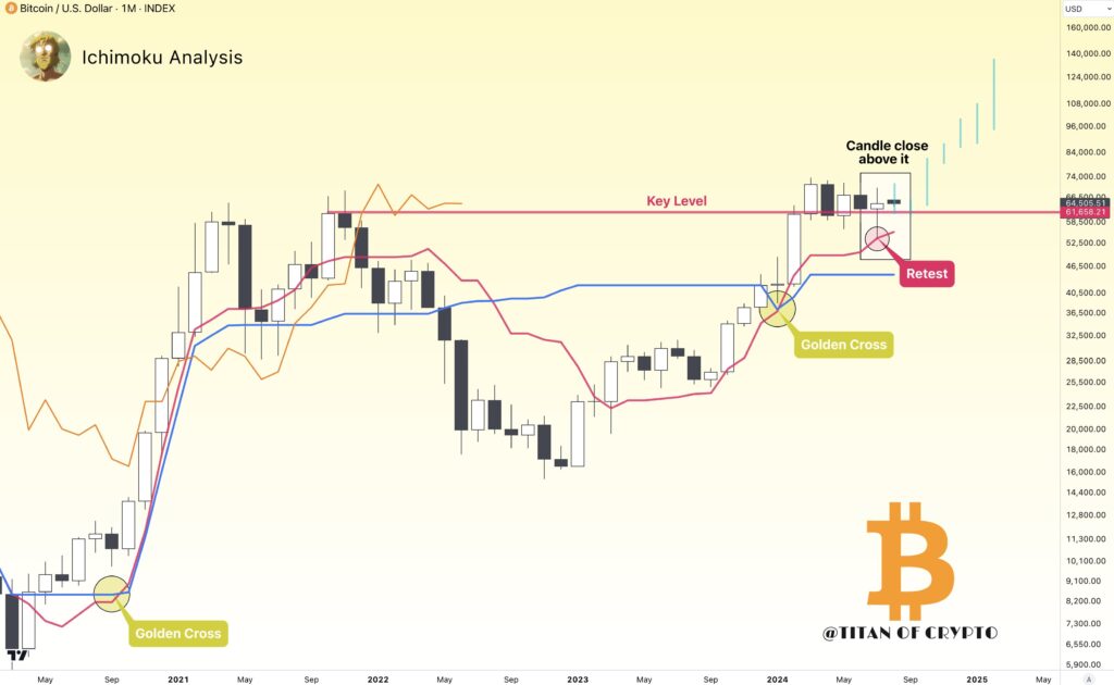 Wolumen wielorybów Bitcoin do/z giełd, zmiana pozycji netto. Źródło: Glassnode, CointelegraphWieloryby, czyli adresy posiadające ponad 1000 BTC w lipcu zakumulowały 84 000 BTC. Po ostatnich spadkach duże adresy wysyłają BTC z giełd na prywatne portfele, w najszybszym tempie od 2015 roku. Analiza techniczna prezentowana przez Cointelegrpah wskazuje, iż najważniejsze krótkoterminowe wsparcia w tej chwili to ok. 62000 USD i 57000 USD za BTC. Adresy Bitcoin z co najmniej 1 000 BTC akumulowały w lipcu średnio ponad 100 000 BTC tygodniowo, według danych z CryptoQuant.