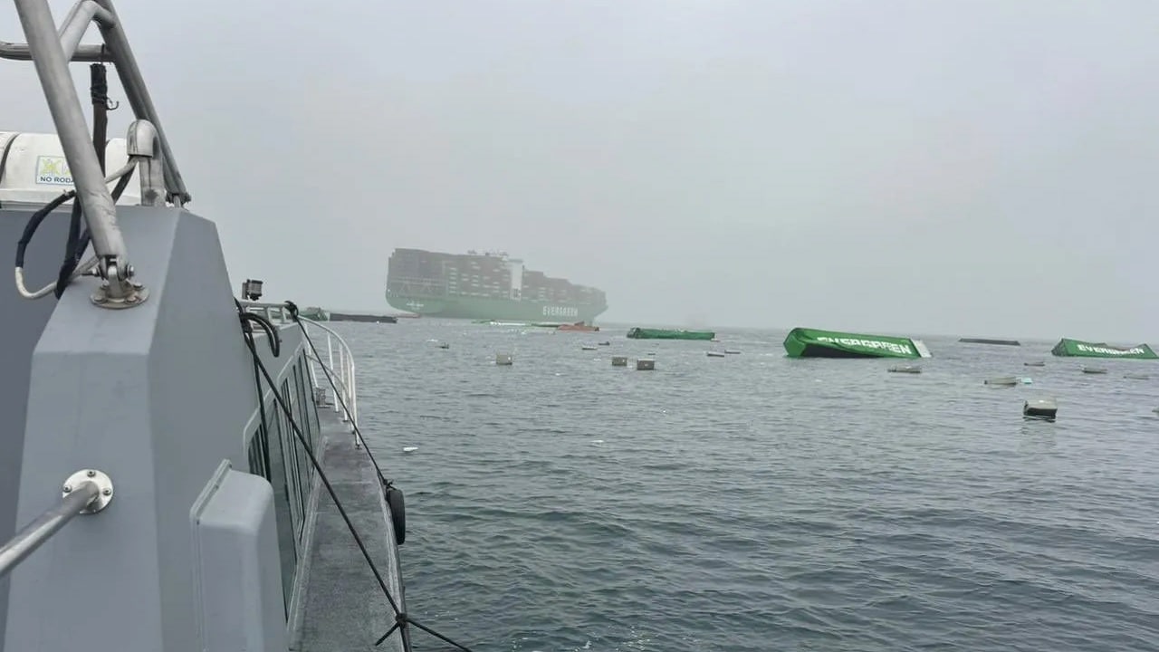 Dziesiątki dryfujących kontenerów, które runęły do morza, gdy niosący je statek wpadł w gwałtowne kołysania, blokuje drogę do ważnego portu.