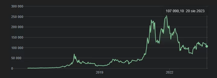 Cena Bitcoina, źródło: Google SCRBRynek kryptowalut tańczy do różnych melodii, od innowacji technologicznych i zmian w przepisach po globalne wydarzenia gospodarcze i skłonności do ryzyka jego inwestorów. Elementy te wzajemnie na siebie oddziałują, wywierając na zmianę wpływ na ostateczny kurs walut cyfrowych.