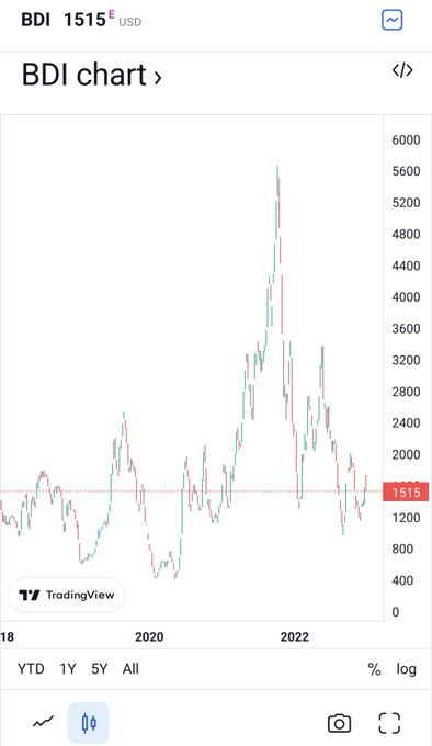 Oczekiwania wobec wzrostu ekonomicznego szefów firm są na najniższych poziomach w historii mimo, iż recesja wciąż de facto nie została potwierdzona! Źródło: Haver Analytics, Morgan StanleyNa deser mamy Baltic Dry Index (BDI), który w tym kwartale stracił blisko 14%, a od początku roku notowany jest prawie 32% niżej, tracąc najwięcej od 2015 roku. Na ostatniej sesji w Londynie indeks spadł o 8% przez obawy wokół rozwijającej się w Chinach pandemii koronawirusa. Jeśli recesja rzeczywiście się zmaterializuje, a w Chinach wróci ponownie polityka 'covid zero’ implikująca problemu w łańcuchach dostaw, ceny frachtu spadną prawdopodobnie jeszcze bardziej.