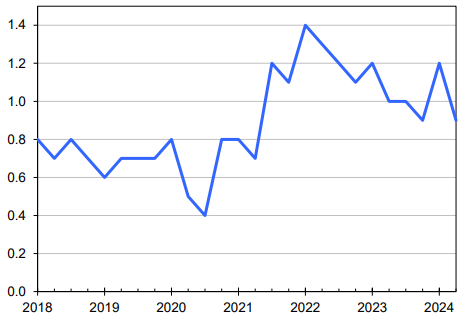 Koszty pracy w USA spadają do poziomi niewidzianego od połowy 2021 roku. Mniej presji cenowej w przedsiębiorstwach? Źródło: US Bureau of Statistics
