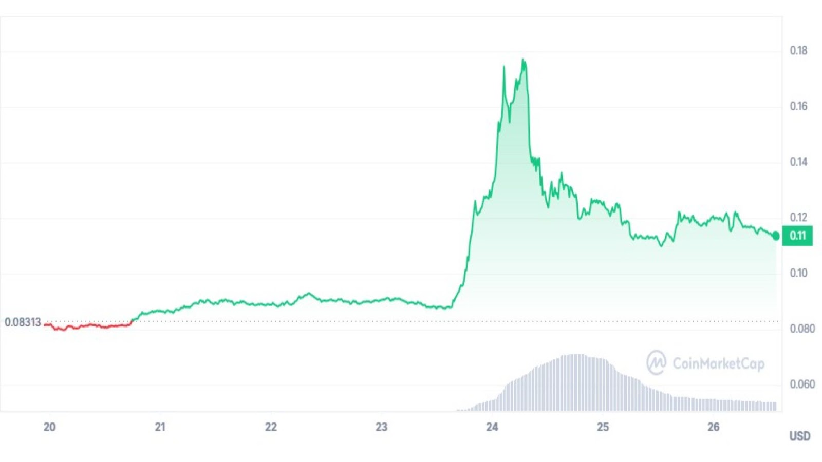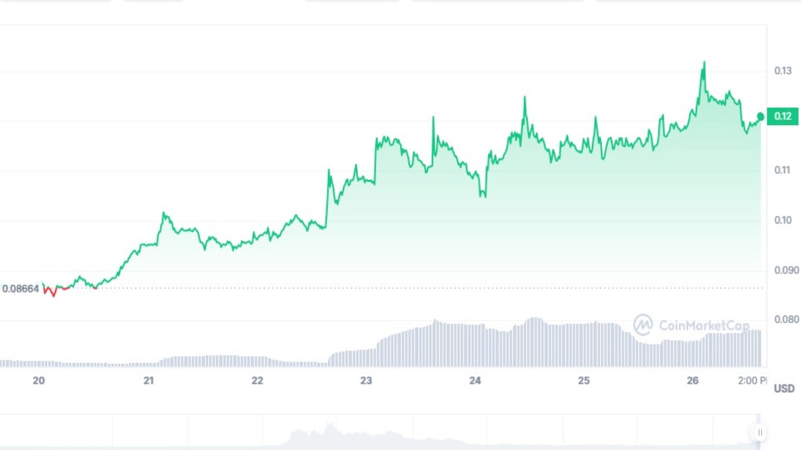 26 kwietnia cena Theta Fuel wynosiła 0,13 USD. Wzrosła więc do poziomu, który ostatnio obserwowaliśmy w maju 2022 roku. W ciągu ostatnich 7 dni token podrożał z poziomu 0,08665 USD do 0,1199 USD, co oznacza wzrost o 37,83%.