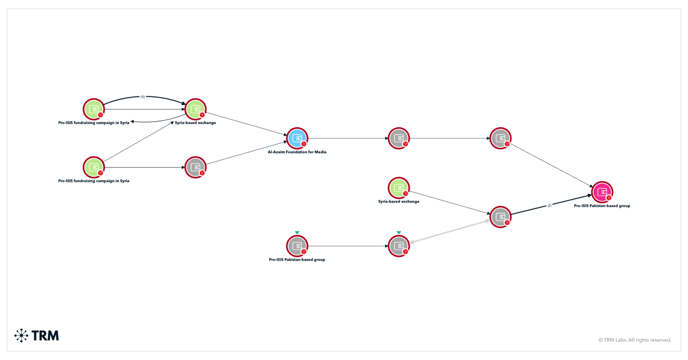 Dzięki śledzeniu blockchain TRM Labs zidentyfikowała przepływ środków i powiadomiła giełdę, na której grupa wymieniała swoje środki na gotówkę. Giełda powiadomiła lokalne władze, co doprowadziło do aresztowania w Turcji czołowego zbieracza funduszy dla ISIS, Shamila Hukumatova w czerwcu tego roku.