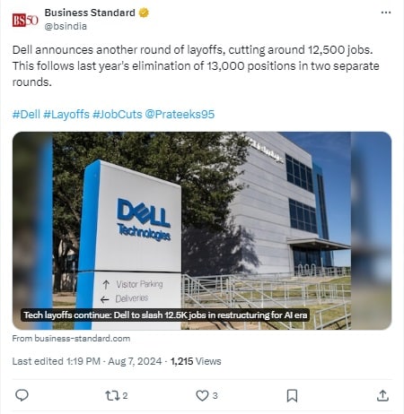 Źródło: https://x.com/bsindia/status/1821144058997113102Dell to jeden z czołowych producentów komputerów. Podobnie jak cała branża, w trakcie pandemii firma nie nadążała z realizacją zamówień. Powodem było upowszechnienie zarówno nauki, jak i pracy zdalnej. Obecnie, gdy sytuacja się unormowała, popyt na nowe komputery znacznie zmalał. To wymusiło na firmie decyzję o zmianie dotychczasowego kierunku. Na ten moment firma planuje skupić się na rozwiązaniach związanych ze sztuczną inteligencją.