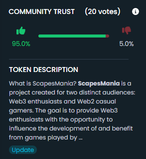 Na popularnych platformach społeczność kryptowalutowa huczy od rozmów na temat ScapesManii. Ludzie chętnie do niej dołączają, ponieważ zgadzają się z jej wizją i chcą odgrywać w niej aktywną rolę. choćby wieloryby zwróciły na nią uwagę, a ich wpłaty przekroczyły już 20 000$.