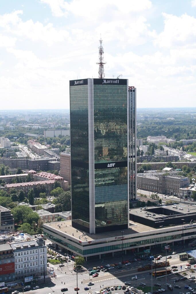 LIM Center z szyldem Marriott International w 2010 r., źródło: Wikimedia CommonsW hotelu znajdowało się 523 pokojów, w tym luksusowy apartament prezydencki na najwyższych piętrach budynku, z panoramicznym widokiem na Warszawę. Obiekt stał się nieodłącznym elementem miejskiego krajobrazu, a jego charakterystyczna sylwetka wpisała się na stałe w panoramę stolicy.