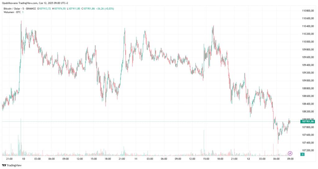 Po szturmie byków przyszedł jednak czas na korektę i dziś za 1 BTC płaci się już tylko ok. 108 000 USD.