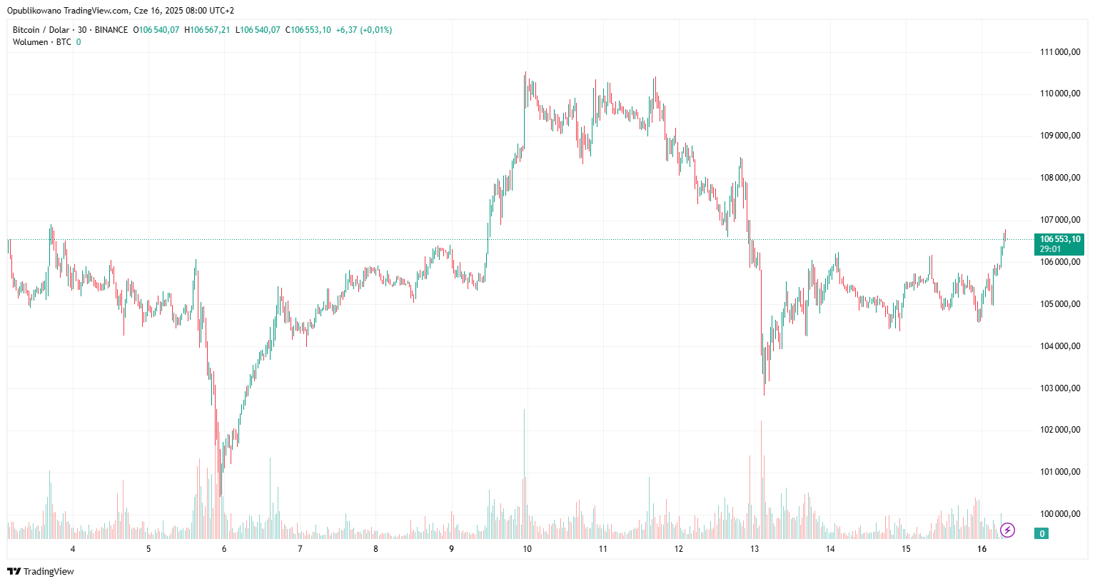 - Kurs bitcoina powrócił w okolice powyżej 106 tys. dolarów.