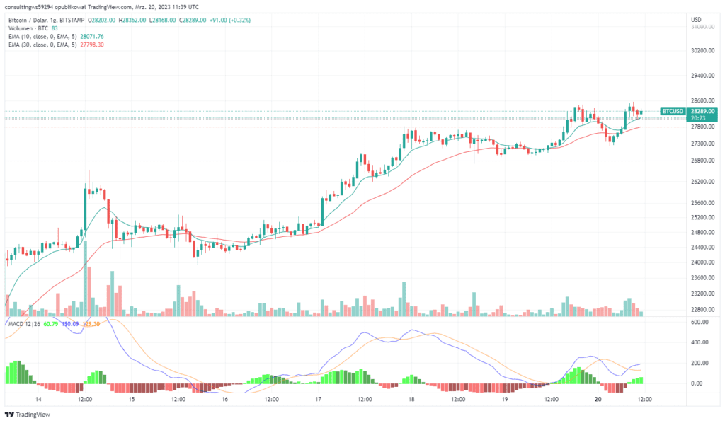 Bitcoin szykuje się do pokonania oporu na 28 500 USD