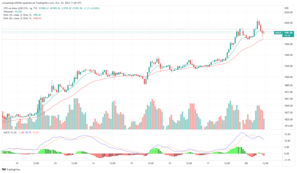 Europejski Bank Centralny podniósł w zeszłym tygodniu stopę procentową o 50 punktów bazowych, utrzymując jastrzębie stanowisko pomimo obaw sektora bankowego i zawirowań na rynku. Starszy strateg rynkowy RJO Futures, Frank Cholly, powiedział Kitco News, iż dało to rynkom pewność, iż Fed będzie kontynuował swoje obecne plany.