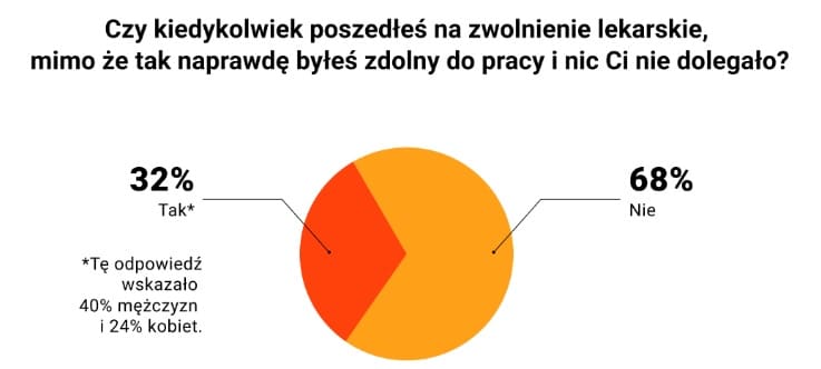 Uwagę przykuwają też powody brania L4, które wskazali respondenci. Jako główne powody zwolnienia lekarskiego ankietowani wskazali: