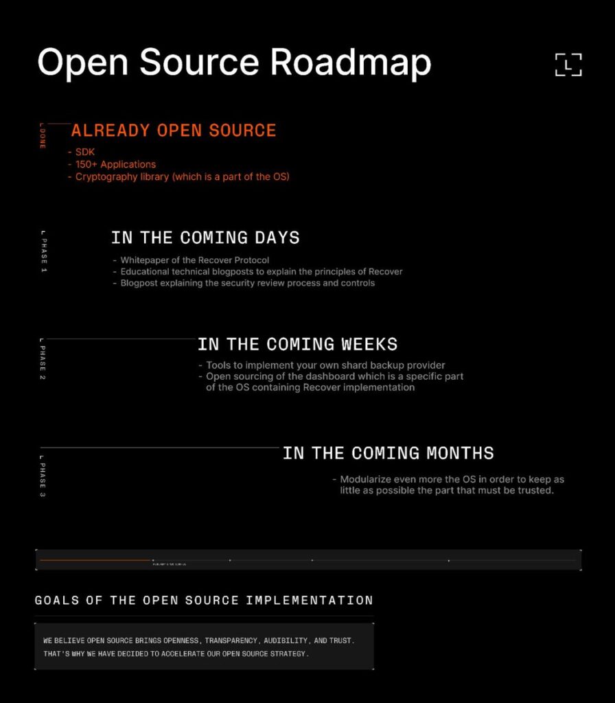 Niedawno udostępniliśmy własną bibliotekę kryptograficzną (która jest częścią naszego systemu operacyjnego), a niedługo opublikujemy białą księgę Ledger Recover, umożliwiając każdemu audyt protokołów kryptograficznych i umożliwiając ludziom tworzenie własnych dostawców kopii zapasowych shardów.