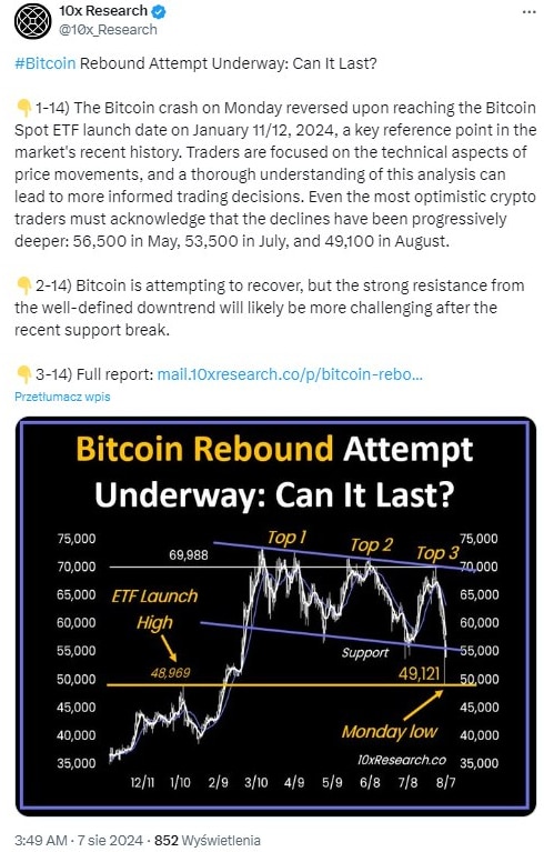 Analityk rynku kryptowalut z firmy 10x Research twierdzi, iż BTC musi wrócić do poziomów obserwowanych w okolicach uruchomienia spotowych funduszy ETF Bitcoin, aby uzyskać optymalny punkt wejścia.
