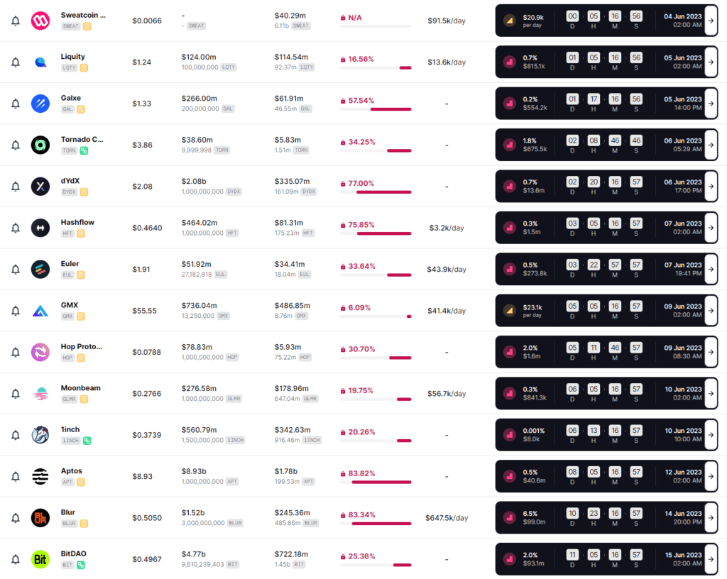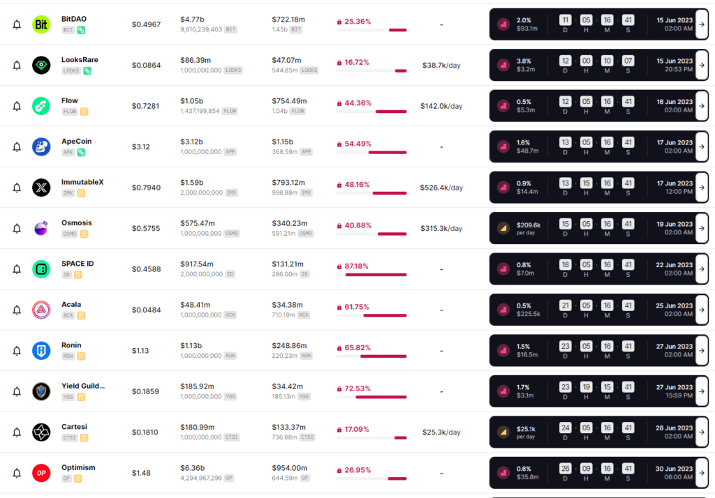 Bardzo wiele projektów planuje w tym miesiącu na uwolnienie swoich tokenów, zazwyczaj wynagradzając kierownictwo i deweloperów oraz inwestorów którzy wierzyli w start-up w najwcześniejszych rundach finansowania. Dla porządku przedstawiamy grafiki pobrane z portalu poświęconego tej tematyce, tokenunlocks.app, a opiszemy tylko te najważniejsze. Zapraszamy do lektury!