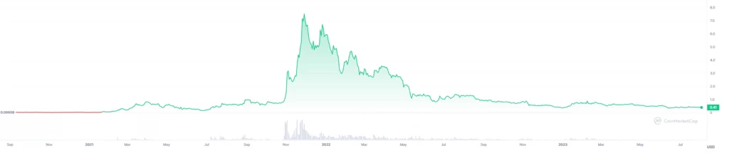 Jednak po początkowym wzroście nastąpiła intensywna wyprzedaż, która spowodowała spadek ceny o 33% z 0,76 USD do 0,50 USD w ciągu jednego miesiąca.