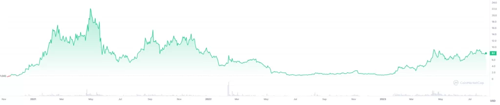 Podczas poprzedniego odblokowania tokena 12 lipca wyprzedaż doprowadziła do 20% spadku ceny tokena z najwyższego poziomu 9,50 USD z 21 lipca do najniższego poziomu 7,25 USD z 1 sierpnia.