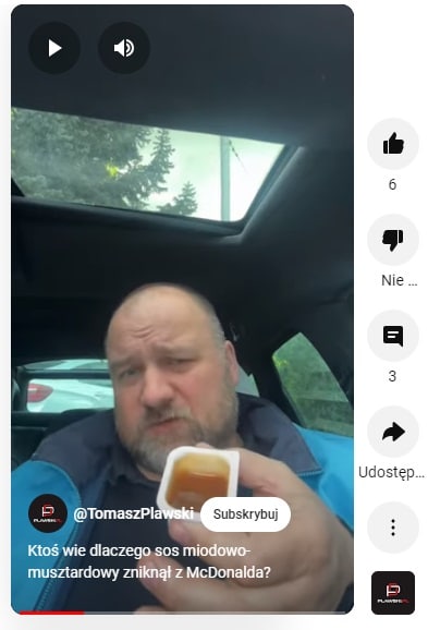 Źródło: https://www.youtube.com/shorts/lOA8WGVTHU0Na forach internetowych można trafić na dyskusje i komentarze dotyczące możliwych powodów wycofania produktu. Jeden z youtuberów, Tomasz Pławski, na swoim kanale wstawił filmik, w którym ocenia, iż przyczyną wycofania sosu musztardowego w McDonald`s jest wzrost cen gorczycy.