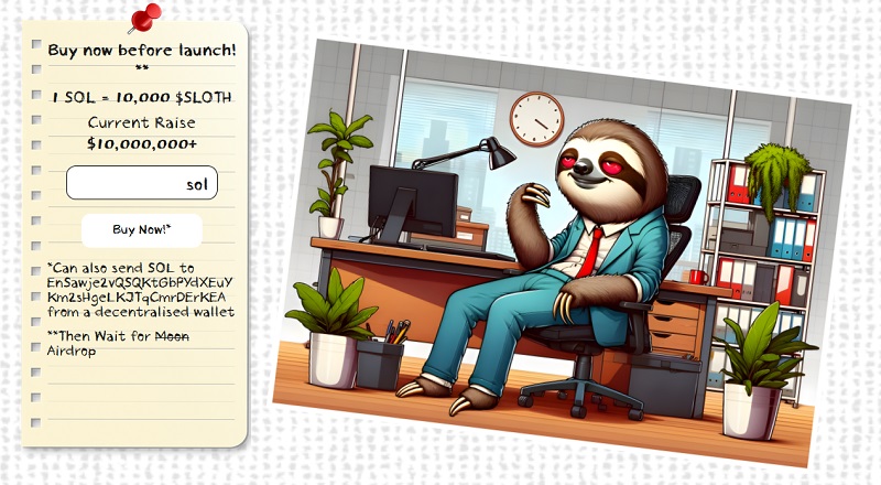 Slothana to memecoin, który w ostatnich dniach jest na ustach wielu inwestorów. Token nie zadebiutował jeszcze na giełdzie, ale jest dostępny w fazie przedsprzedaży, ciesząc się ogromnym zainteresowaniem odbiorców. Otóż w kilkanaście dni twórcom udało się zebrać ponad 10 000 000 USD.