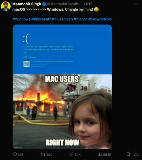 Podczas aktualizacji związanej z firmą CrowdStrike doszło do błędu, który spowodował globalną awarię systemów. CEO CrowdStrike, George Kurtz, podkreślił, iż przestój nie był wynikiem ataku hakerskiego ani złośliwego wykorzystania luki. Skierował użytkowników do oficjalnych kanałów wsparcia CrowdStrike w celu zaktualizowania oprogramowania. Zapewnił również, iż problem został zidentyfikowany i naprawiony.