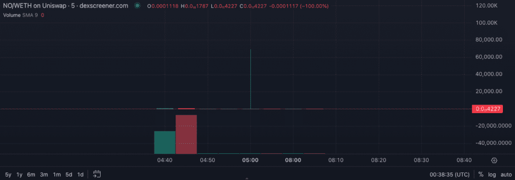 Anonimowy bohater tej historii próbował wykorzystać okazję do zarobku na premierze nowo wybitego tokena w standardzie ERC-404 o nazwie „No Handle (NO)”, jednak w ciągu zaledwie 35 minut cała wartość jego nowej inwestycji spadła do wartości okrągłego zero. Ów fenomen znany z wielu, głównie mało komu znanych powstających projektów jest często określany w środowisku krypto jako „rug pull”, czyli dosłownie: „wyjęcie komuś dywana spod nóg”.