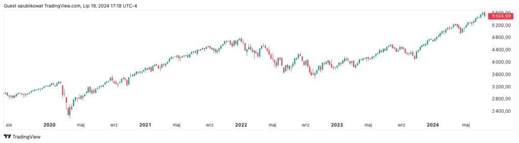 Pięcioletni wykres S&P 500 (fot. TradingView)Indywidualnym inwestorom Spitznagel radzi, aby pozostali przy biernych inwestycjach w akcje, gdyż taka strategia historycznie przynosi najlepsze długoterminowe wyniki. Podkreśla, iż trzymanie się regularnych inwestycji w fundusze indeksowe, mimo wahań rynkowych, jest bardziej opłacalne niż skomplikowane produkty finansowe.