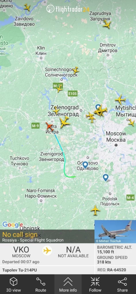 Niedługo potem w okolicach Tweru jednostka uważana za prezydencką wyłączyła transponder.