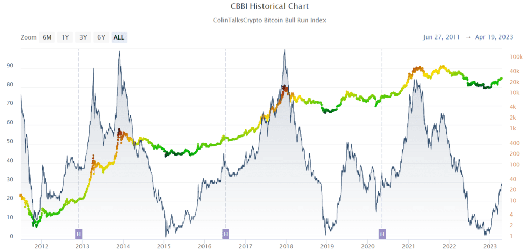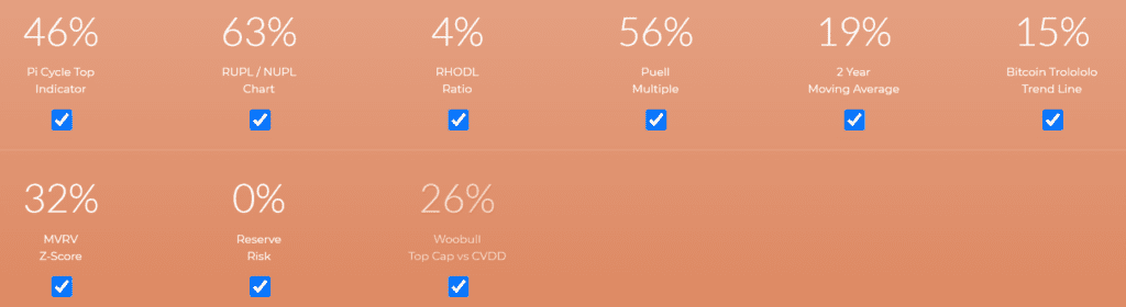 Źródło: Collintalkscrypto, CBBI IndexObecny wskaźnik CBBI Index, na który składa się 9 wymienionych poniżej wskaźników on-chain BTC. Oto one. Przypadek?