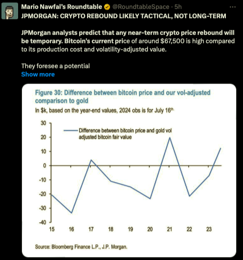 Analitycy JPMorgan w najnowszym raporcie sugerują, iż niedawne odbicie cen kryptowalut może mieć charakter taktyczny, a nie trwały. Wskazują na różnicę między obecną ceną Bitcoina wynoszącą około 68 000 dolarów a kosztem jego produkcji, który wynosi około 43 000 dolarów.