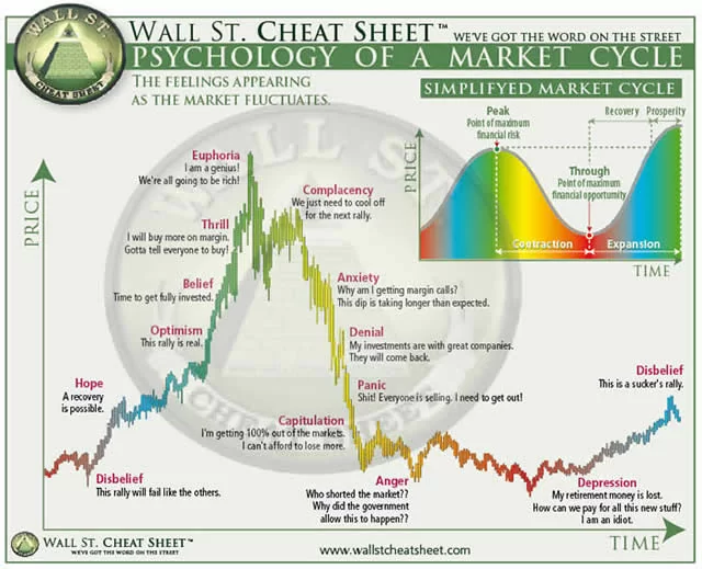 Źródło: walllstcheatsheet.comAle zaraz, zaraz – ryzyko nieintuicyjnie rośnie w czasie, gdy rzeczy ulegają poprawie. Swój szczyt osiąga w czasie, gdy kilka może się już poprawić, a wiele pogorszyć. Temu momentowi towarzyszą dwa zjawiska – coraz niższa premia za podejmowane ryzyko inwestycyjne. Oraz spadający margines bezpieczeństwa. Zarówno jedno jak i drugie powinno stanowić istotny składnik analizy rynkowego momentum. Nie znaczy to oczywiście, iż sprawy pogorszą się jutro albo za tydzień. Zobaczmy jednak co może znajdowac się po drugiej stronie 'lustra’ ryzyka. Nie wymienimy oczywiście zjawisk nieprzewidywalnych, z uwagi na ich charakterystykę.