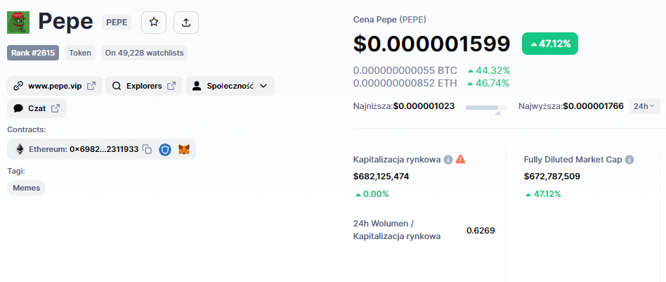 PEPE połyka kolejne setki milionów dolarów. To nie wróży dobrze